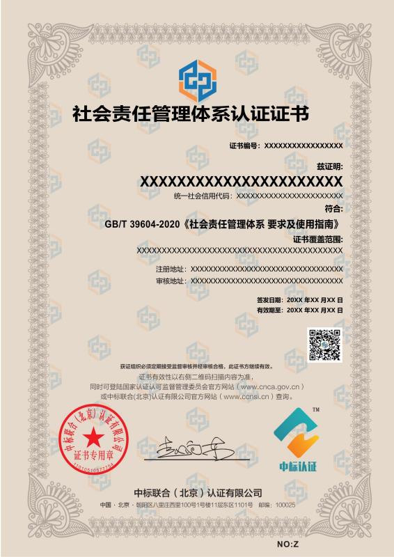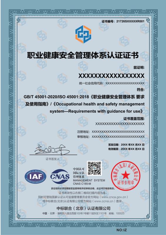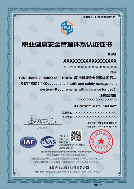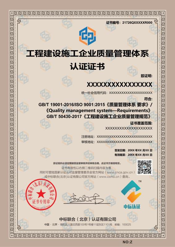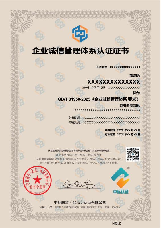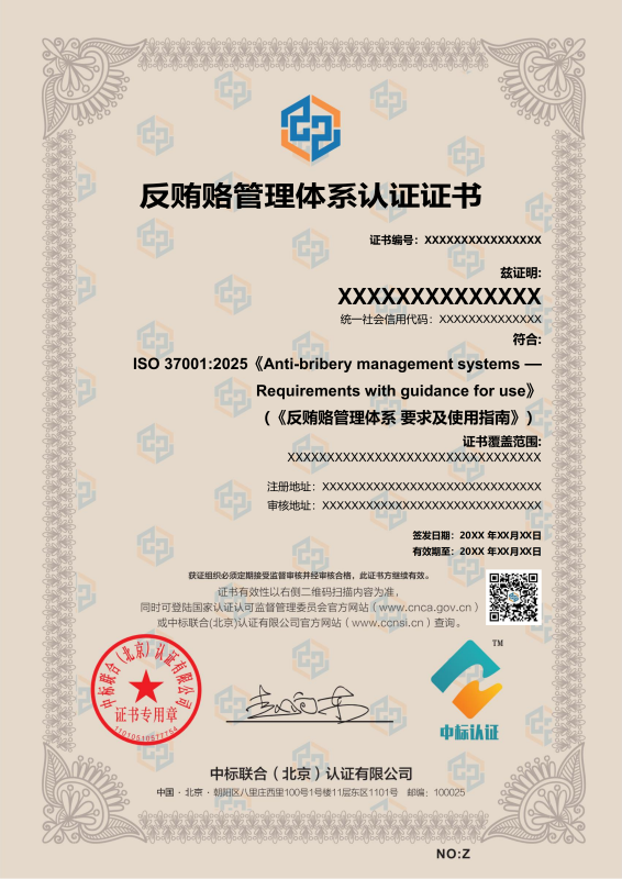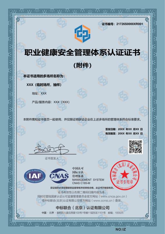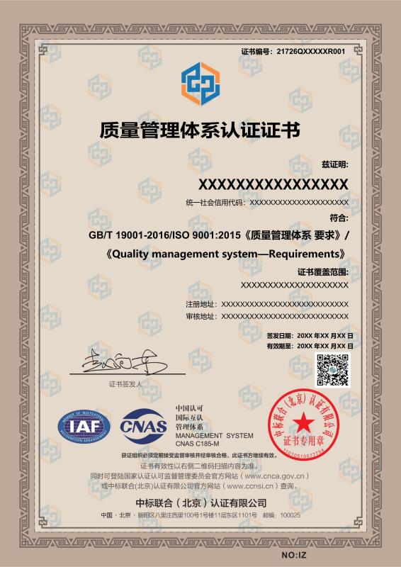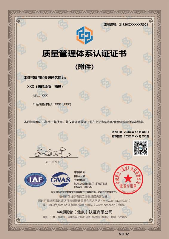 管理体系证书样本展示