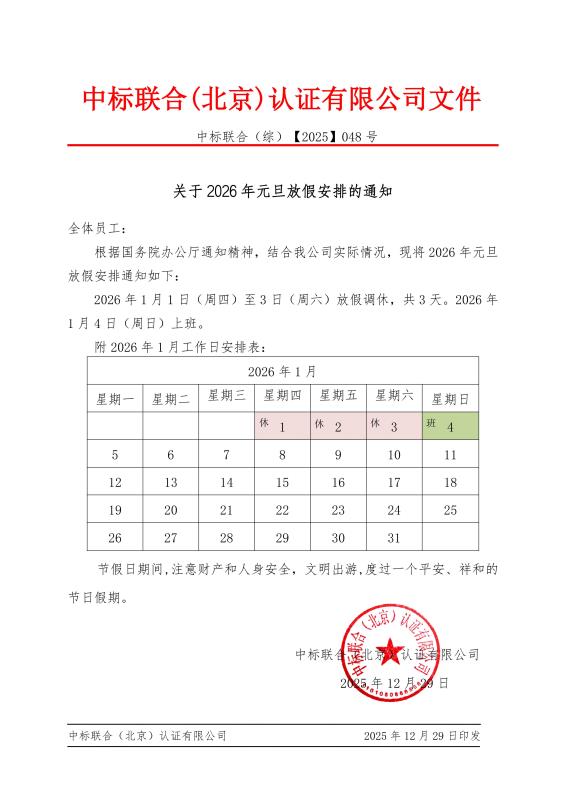 关于2025年元旦放假安排的通知