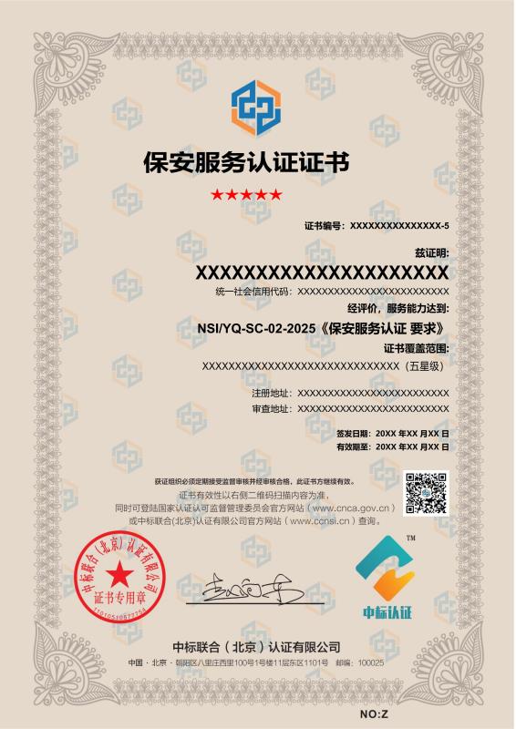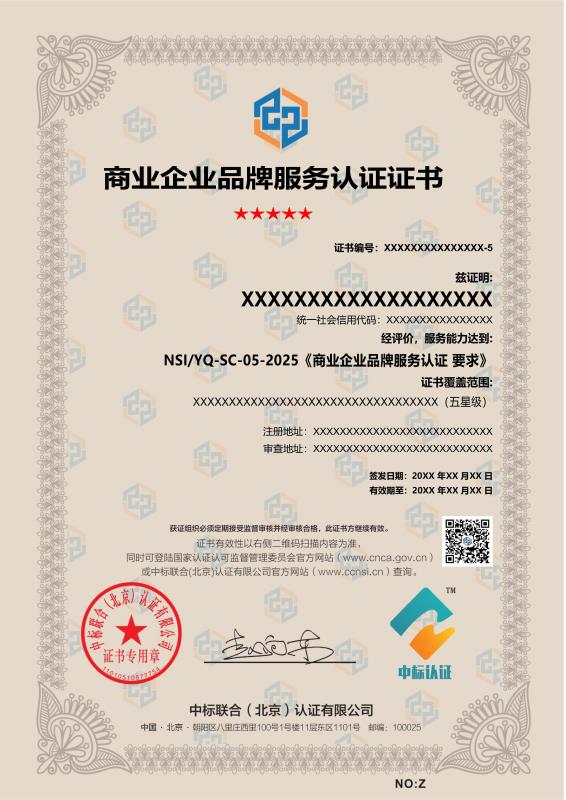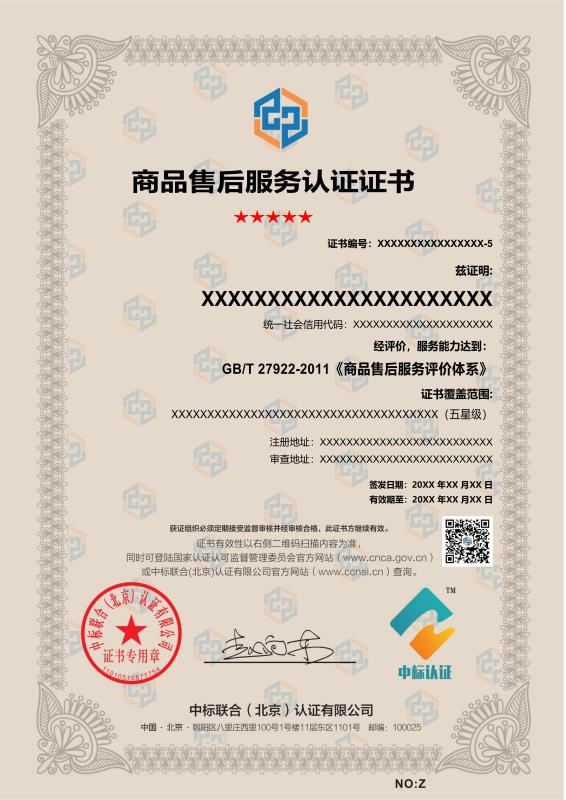 服务证书样本展示