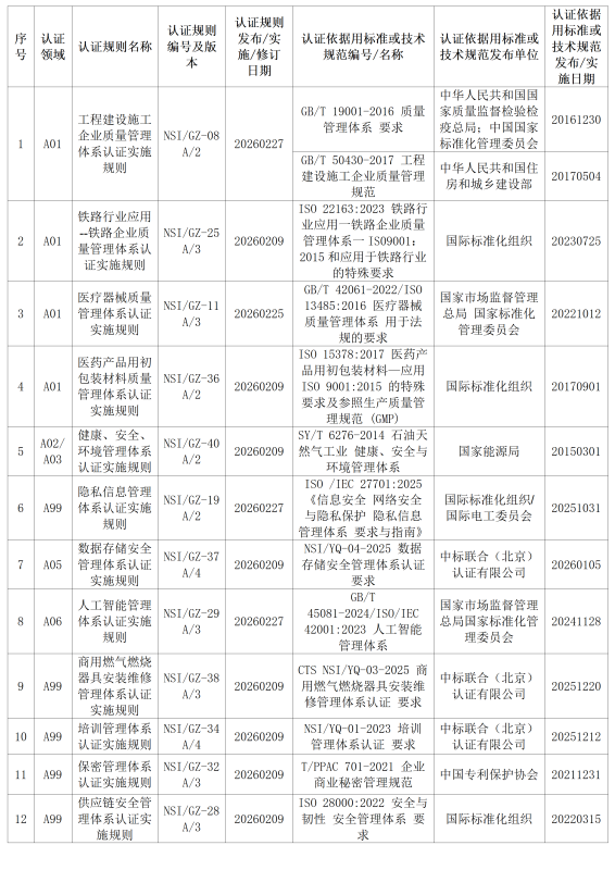 认证规则及认证依据全文获取途径:机构电话 010-56018089/机构邮箱 nsi@ccnsi.cn